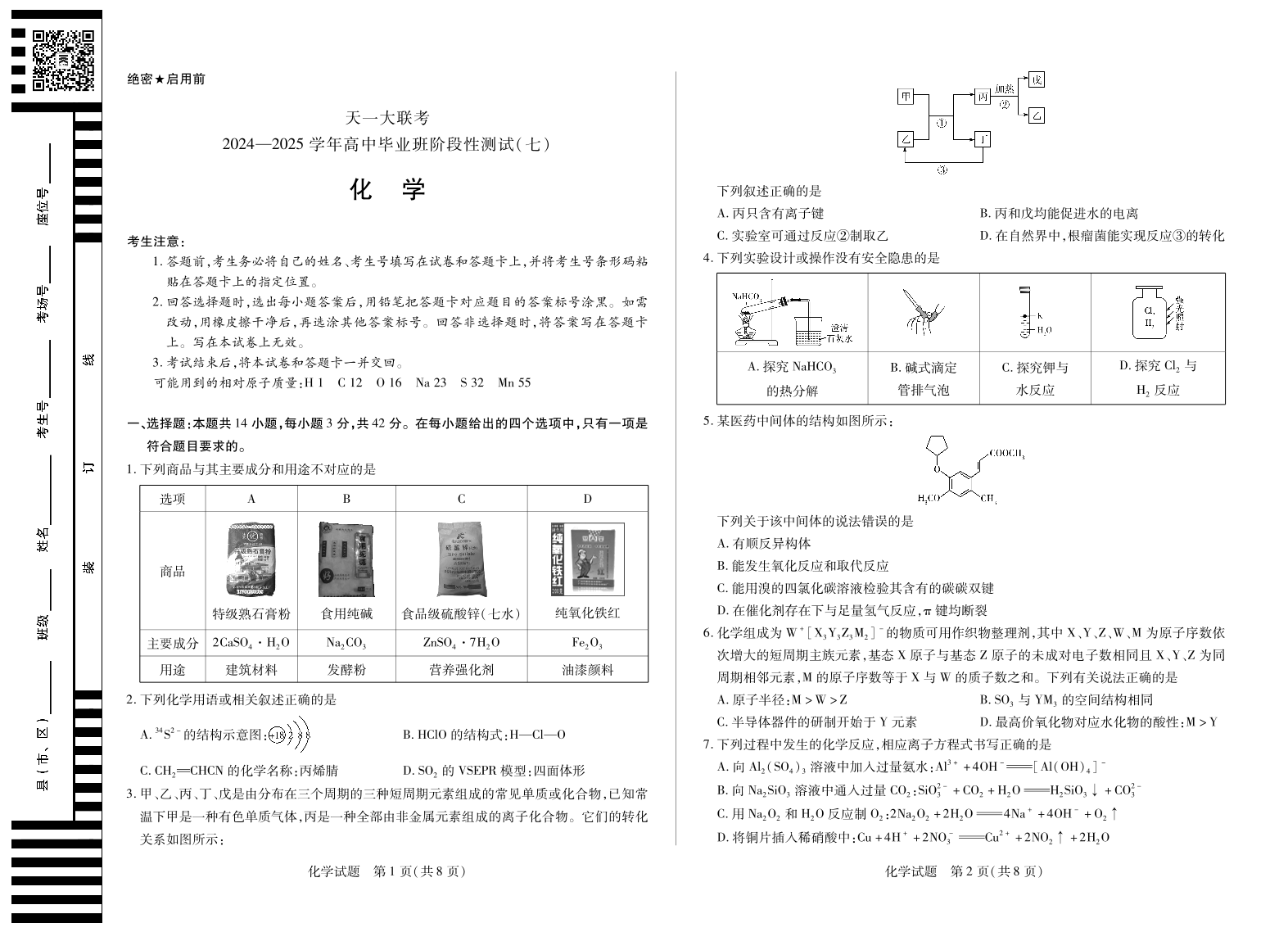 陕西、山西区域高中2024-2025学年高中毕业班阶段性测试(七)化学