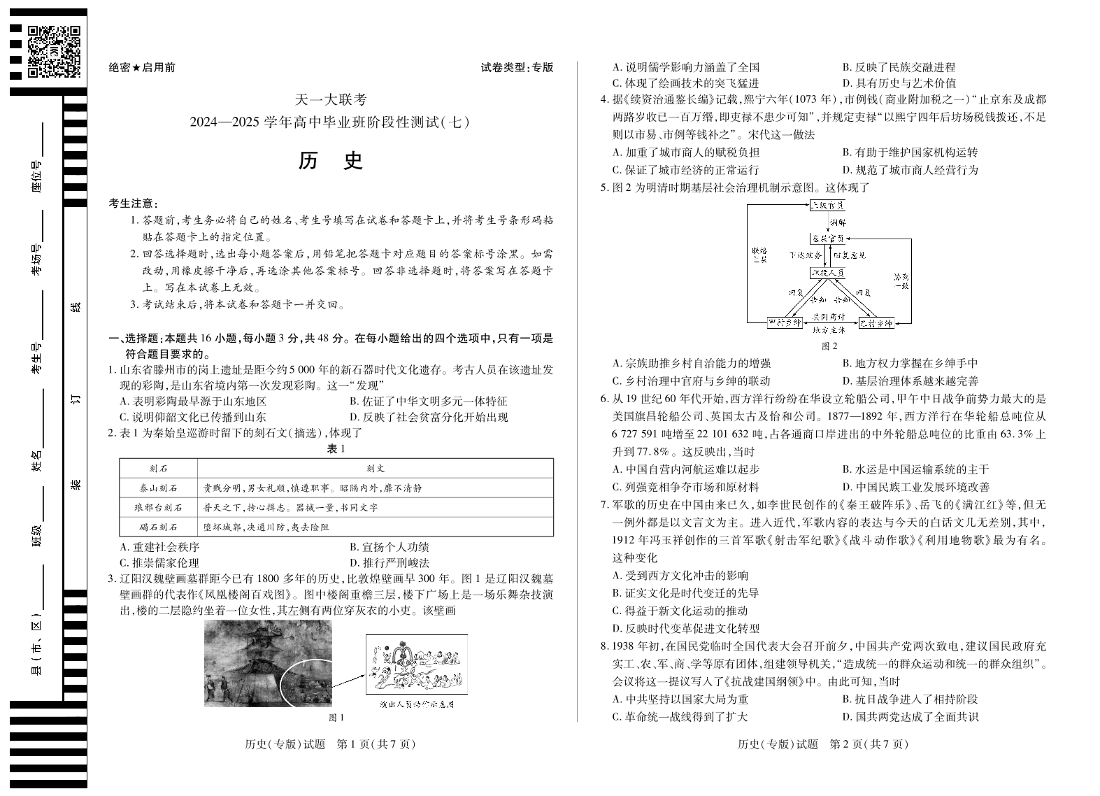 陕西、山西区域高中2024-2025学年高中毕业班阶段性测试(七)历史