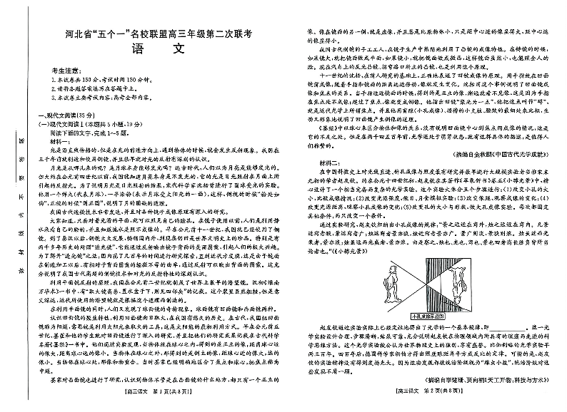 河北省“五个一”名校联盟2024-2025学年下学期4月高三第二次联考语文+答案