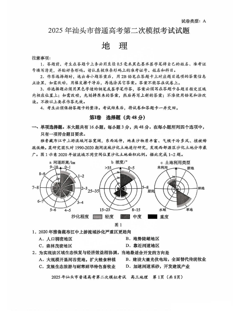 广东省汕头二模2024-2025学年下学期高三第二次模拟考试地理