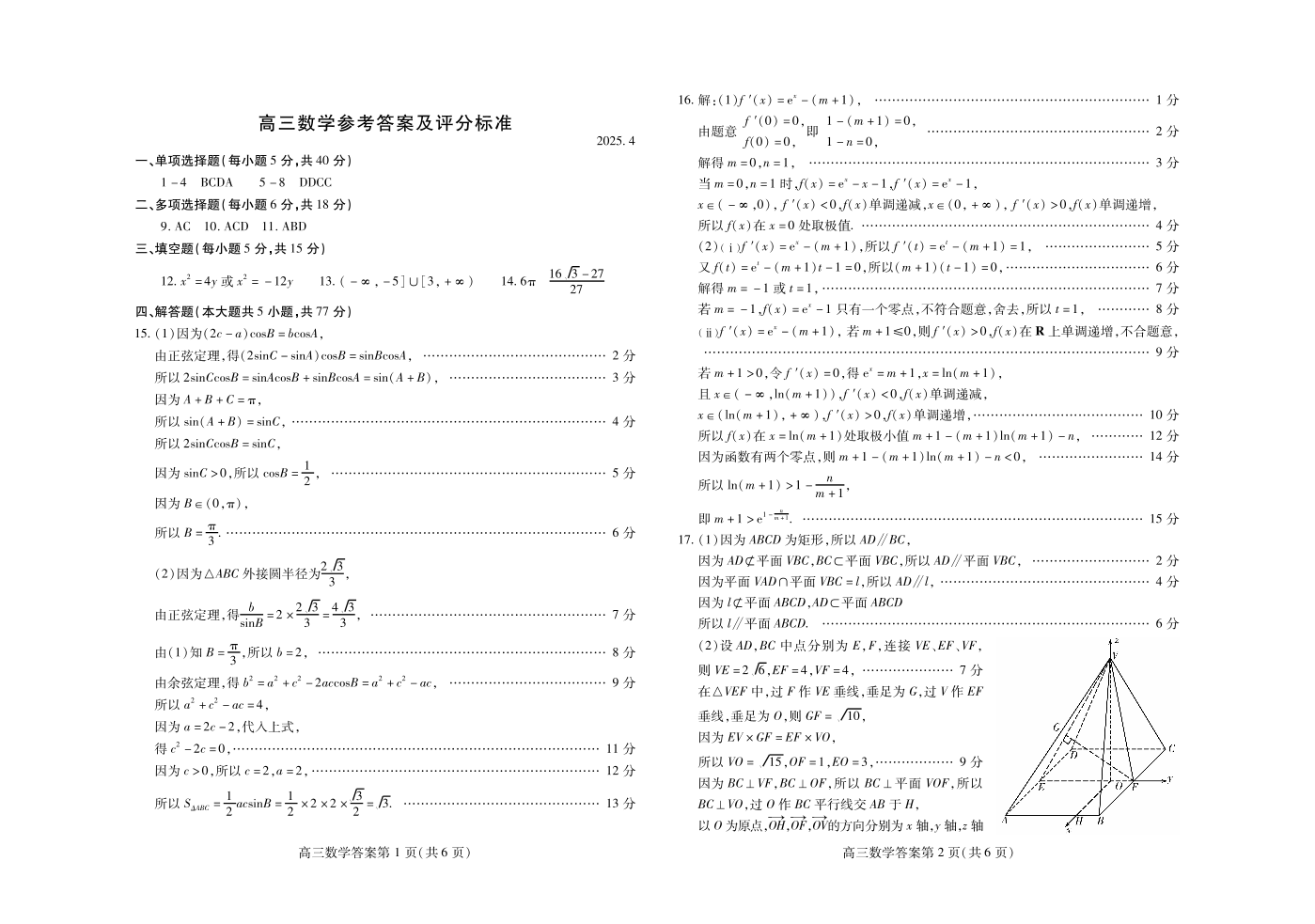 山东省潍坊市2024-2025学年下学期4月高三高考二模统考数学答案