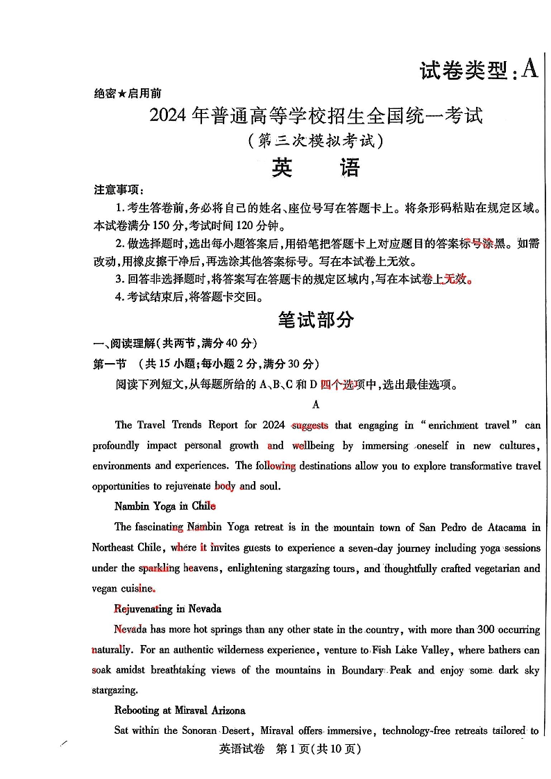 内蒙古自治区包头市2024届高三下学期三模英语+答案
