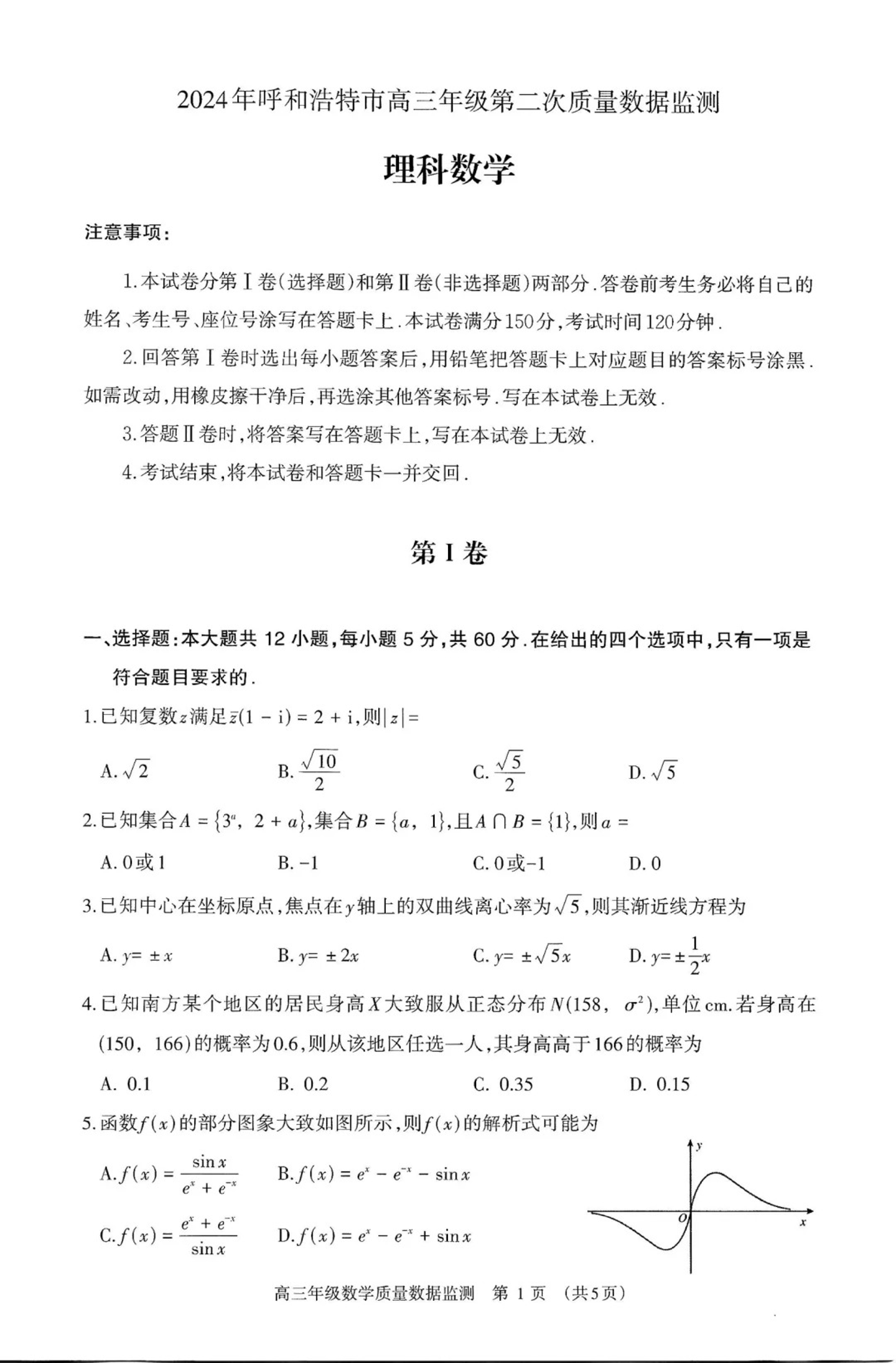 内蒙古自治区赤峰市2024届高三下学期420模拟考试理科数学