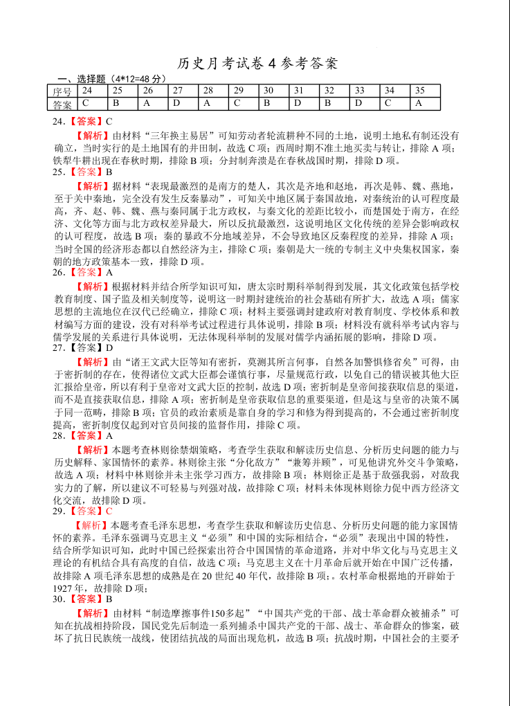 宁夏回族自治区银川一中2024届高三上学期第四次月考历史答案