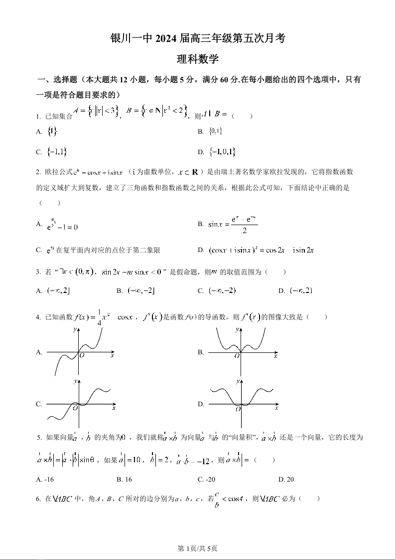 宁夏回族自治区银川一中2024届高三上学期第五次月考数学(理)(原卷版)