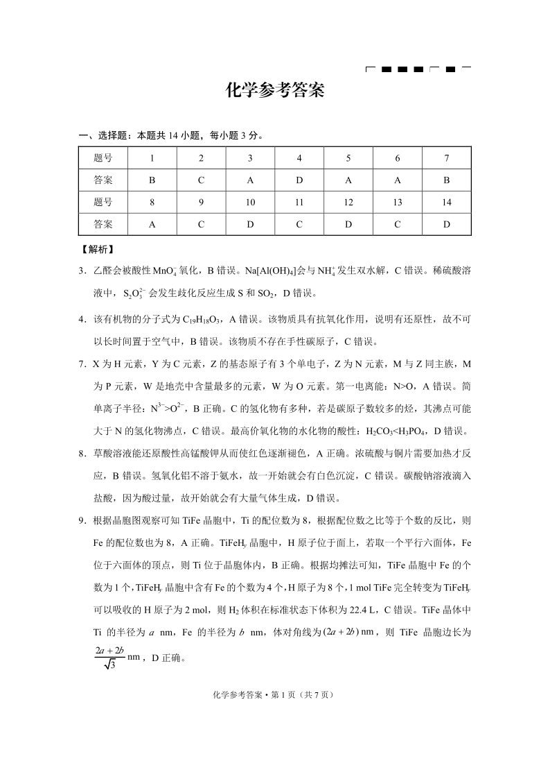 重庆市巴蜀中学2024-2025学年高三高考适应性月考(八)化学答案