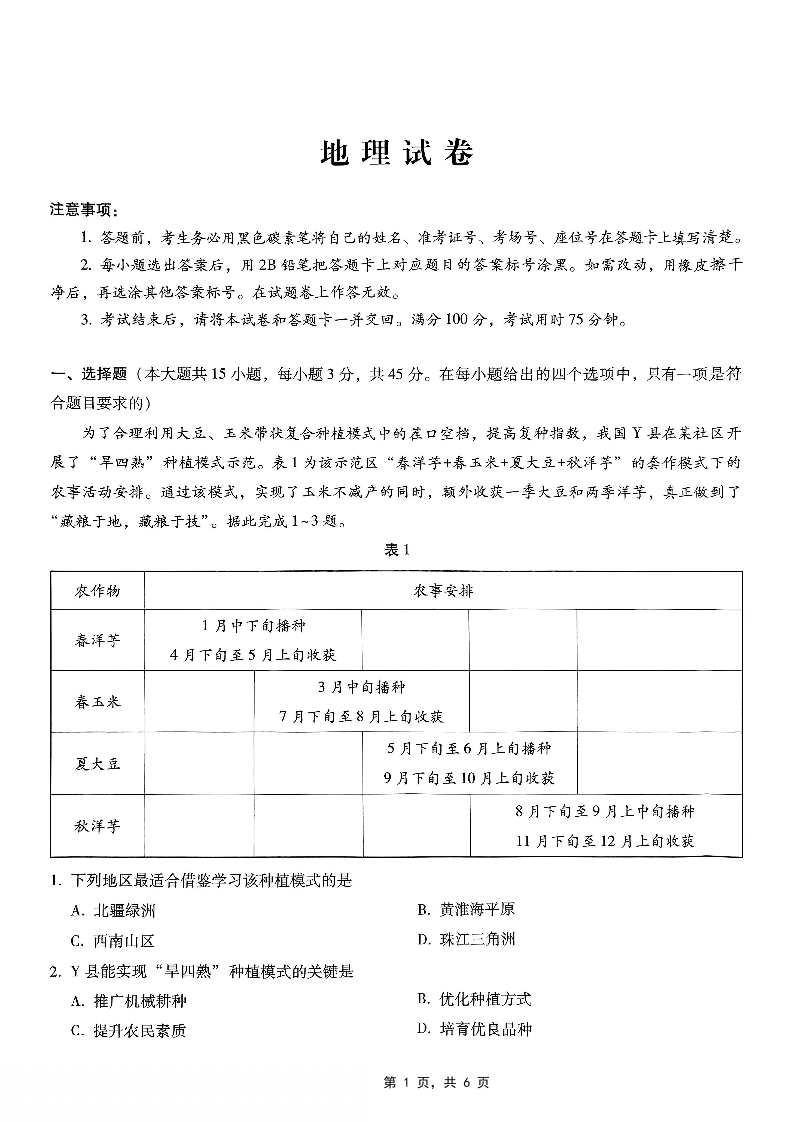重庆市巴蜀中学2024-2025学年高三高考适应性月考(八)地理