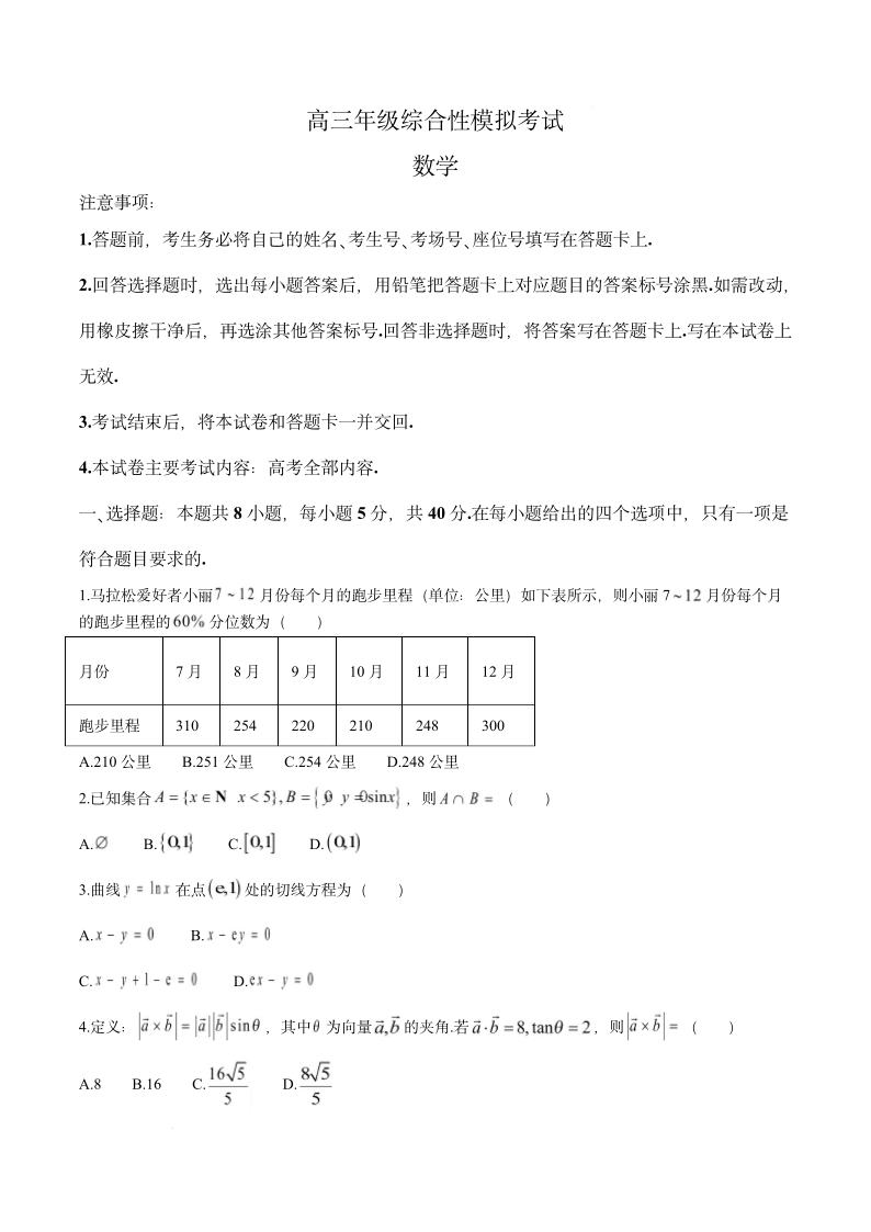 湖南省郴州市多校2024-2025学年下学期高三综合性模拟考试数学+答案