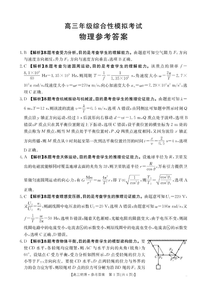 湖南省郴州市多校2024-2025学年下学期高三综合性模拟考试物理答案