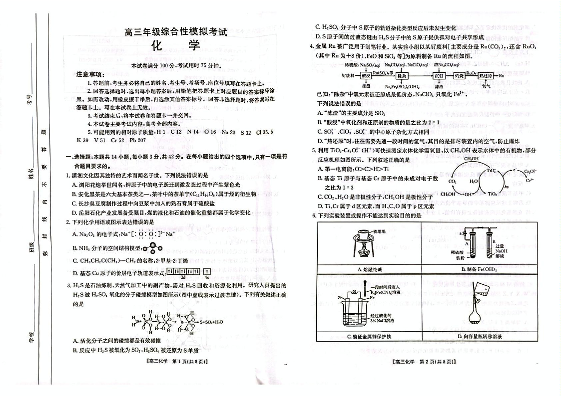 湖南省郴州市多校2024-2025学年下学期高三综合性模拟考试化学