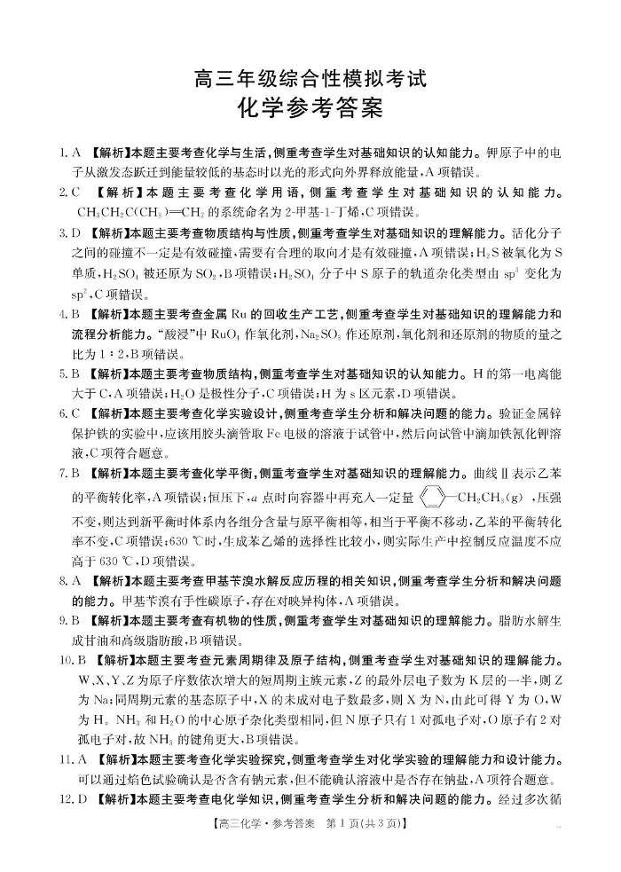 湖南省郴州市多校2024-2025学年下学期高三综合性模拟考试化学答案