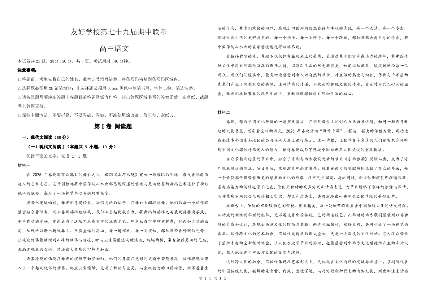 吉林省友好学校2024-2025学年下学期4月高三期中联考语文
