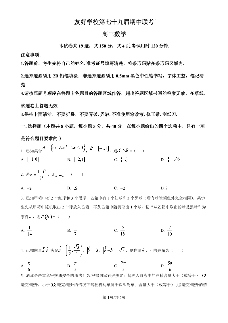 吉林省友好学校2024-2025学年下学期4月高三期中联考数学(原卷版)