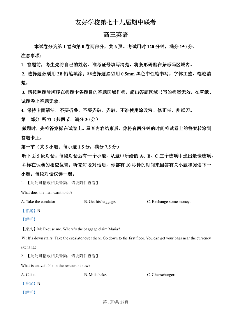 吉林省友好学校2024-2025学年下学期4月高三期中联考英语(精品解析版)