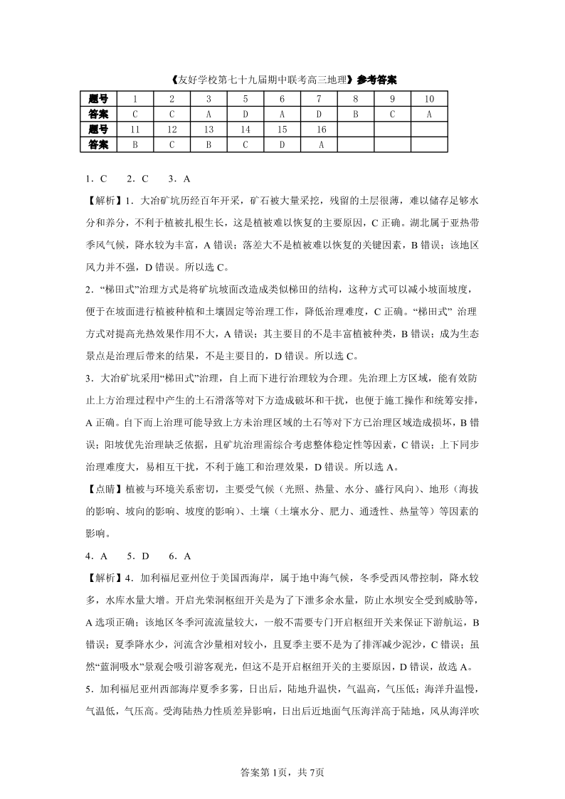 吉林省友好学校2024-2025学年下学期4月高三期中联考地理答案