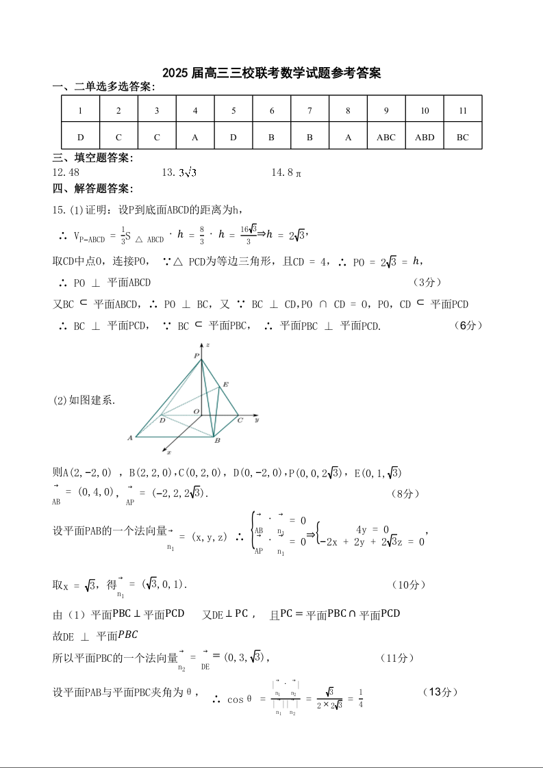 湖北省“黄鄂鄂”2024-2025年学年下学期4月高三联考数学答案