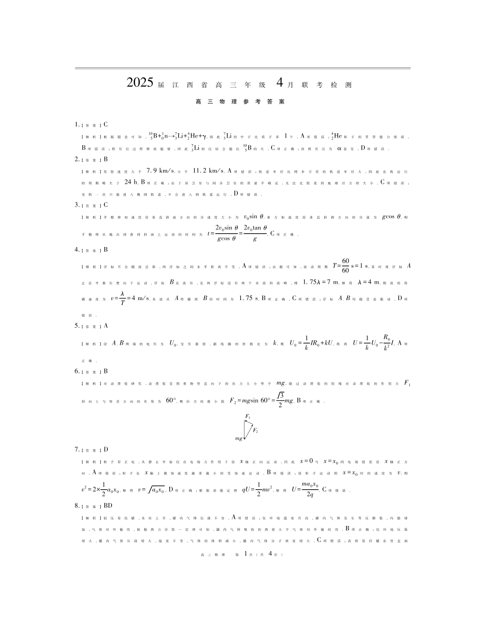 江西省上进联考2024-2025学年4月高三联考检测物理答案