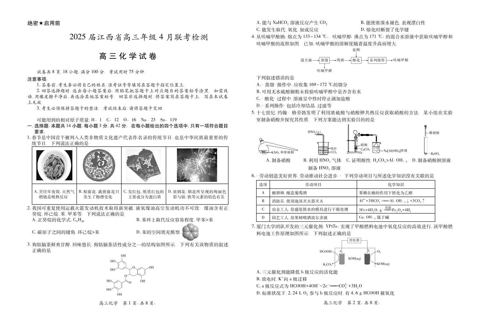 江西省上进联考2024-2025学年4月高三联考检测化学