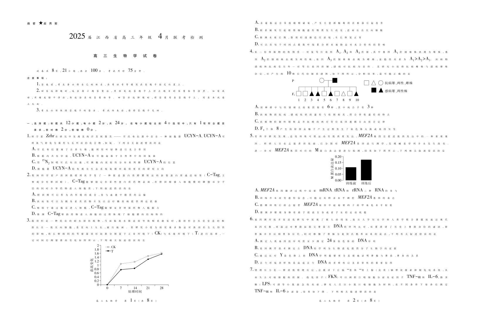 江西省上进联考2024-2025学年4月高三联考检测生物