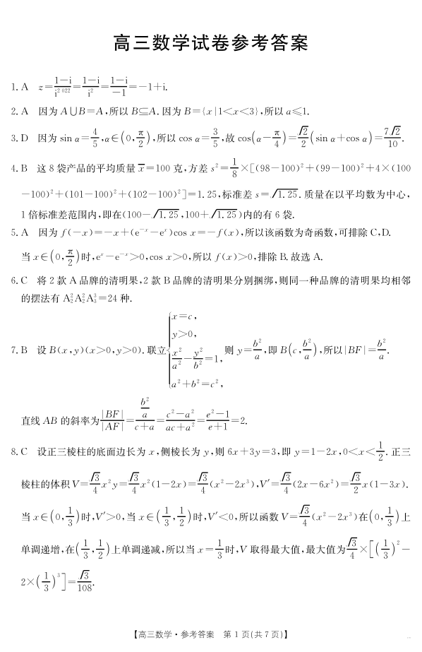 江西省区域高中2024-2025学年下学期4月高三联考数学答案