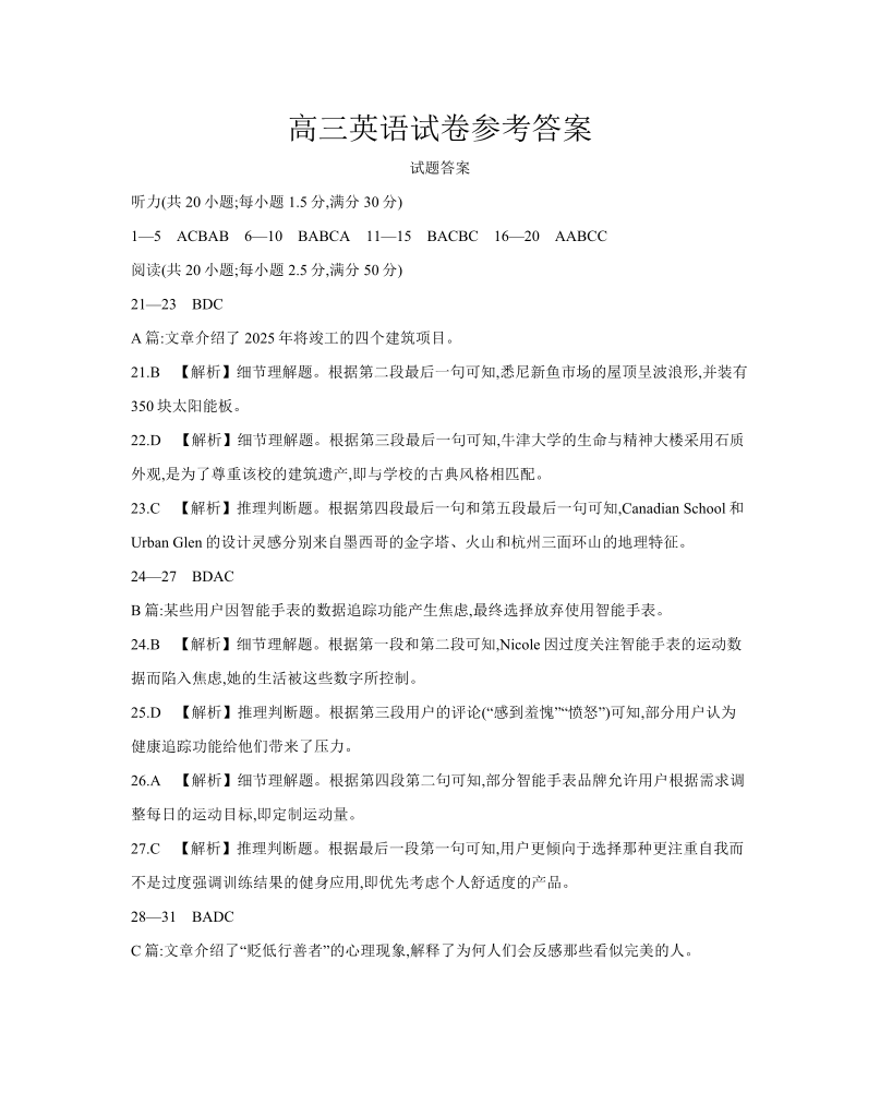 江西省区域高中2024-2025学年下学期4月高三联考英语答案