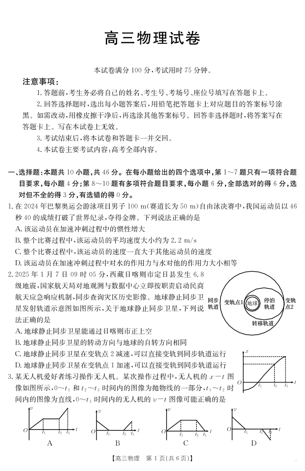 江西省区域高中2024-2025学年下学期4月高三联考物理