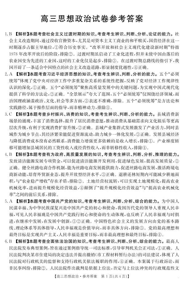 江西省区域高中2024-2025学年下学期4月高三联考政治答案