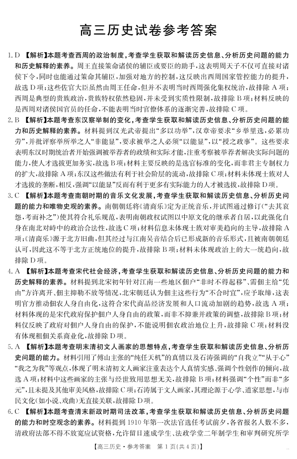 江西省区域高中2024-2025学年下学期4月高三联考历史答案