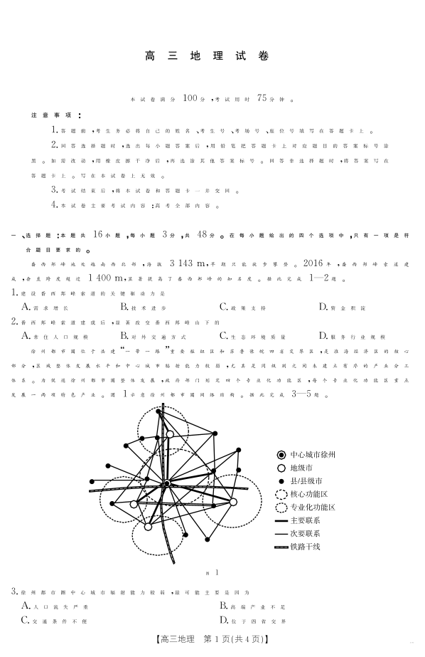 江西省区域高中2024-2025学年下学期4月高三联考地理