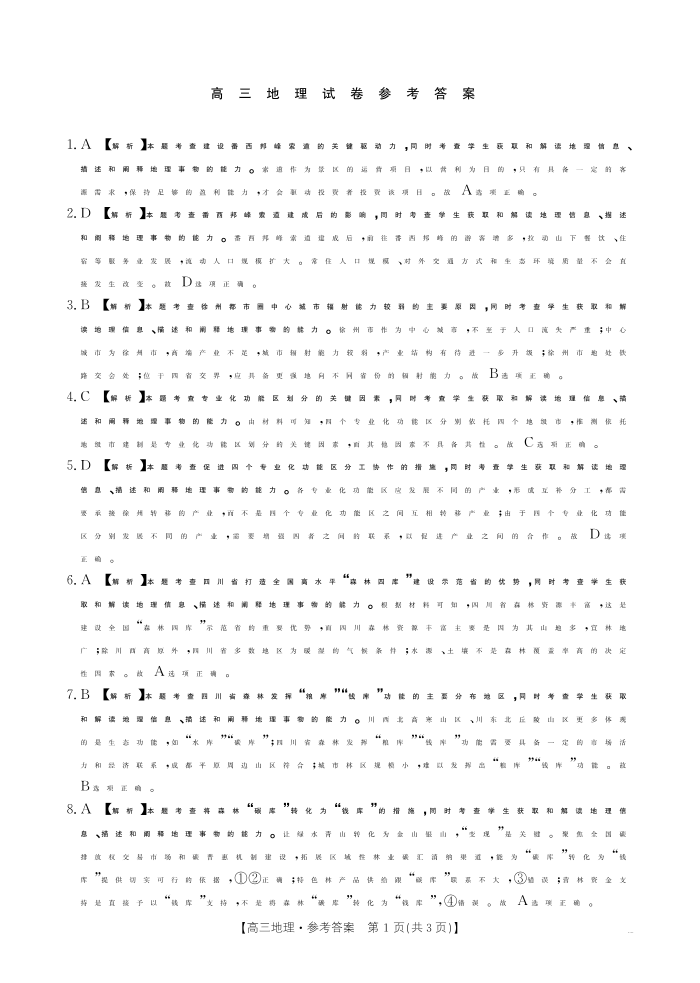 江西省区域高中2024-2025学年下学期4月高三联考地理答案