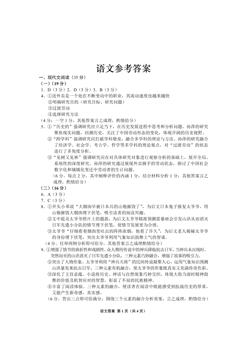 贵州省区域2024-2025学年基础教育质量提升高三教学检测语文答案