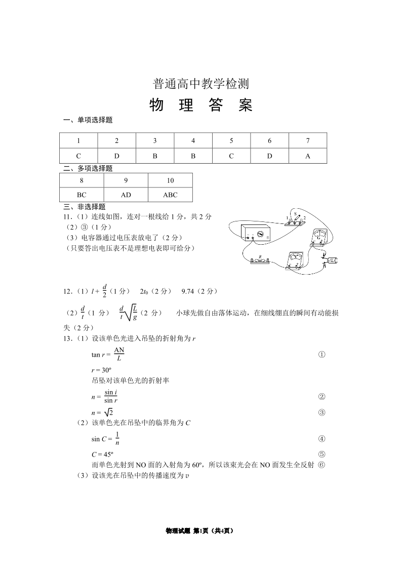 贵州省区域2024-2025学年基础教育质量提升高三教学检测物理答案
