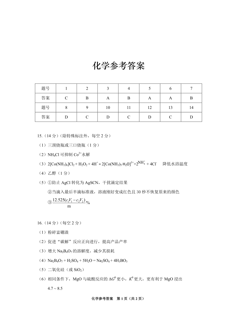 贵州省区域2024-2025学年基础教育质量提升高三教学检测化学答案
