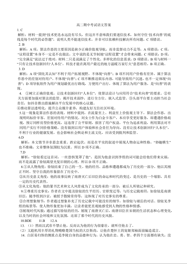四川省泸州市高中共同体2024-2025学年下学期4月高二期中联考语文答案