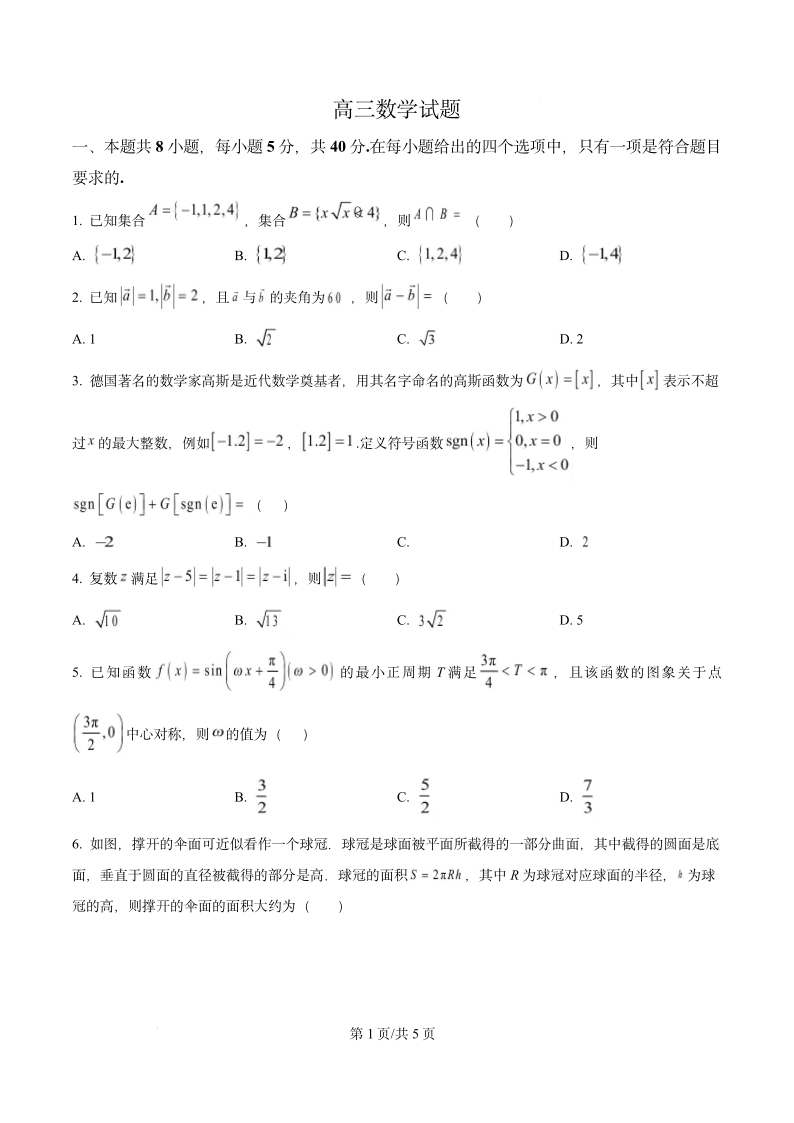 陕西省西安高新第一中学2024-2025学年下学期高三十模数学(原卷版)