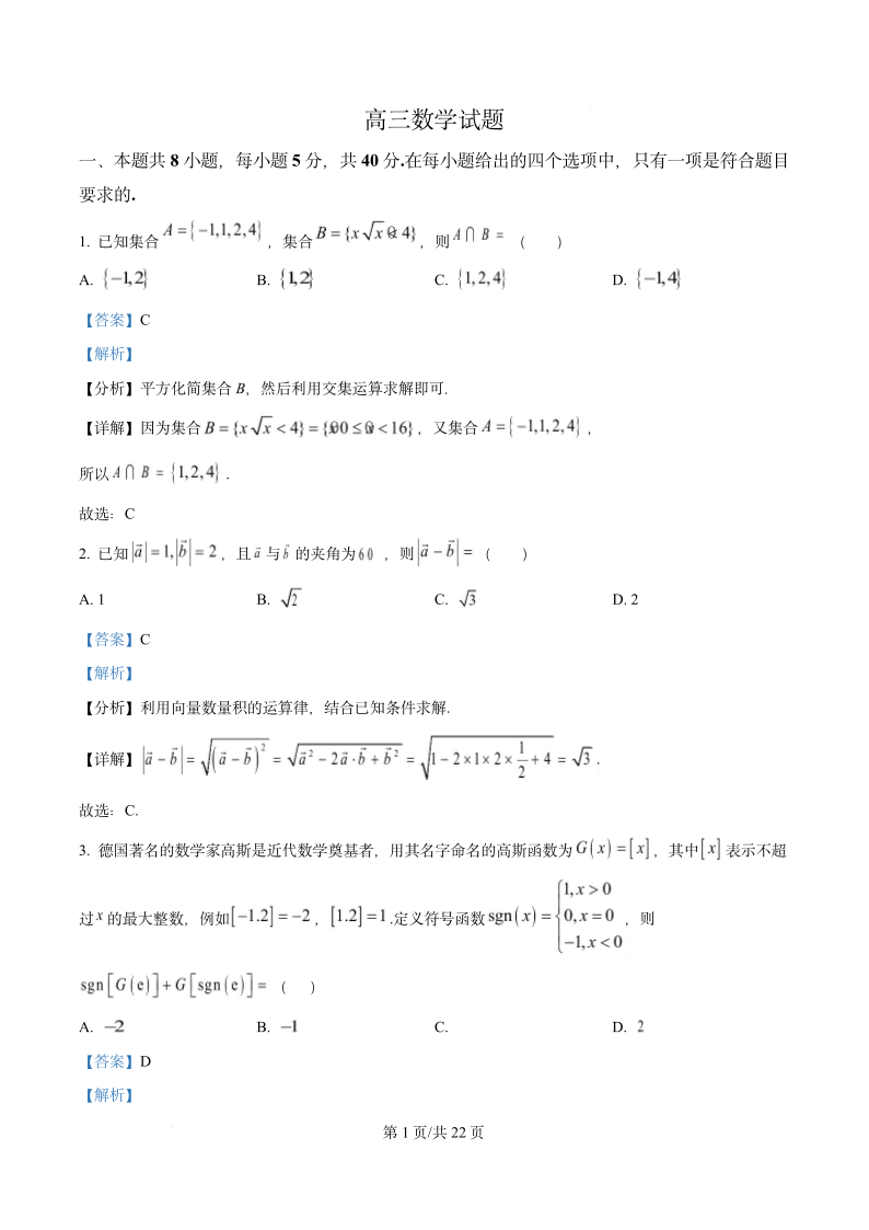 陕西省西安高新第一中学2024-2025学年下学期高三十模数学(精品解析版)