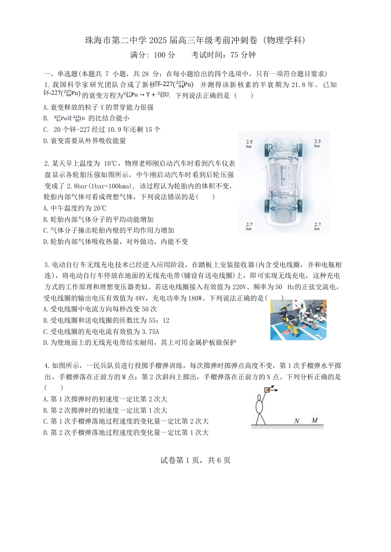 广东省珠海市第二中学2024-2025学年下学期高三高考考前冲刺物理