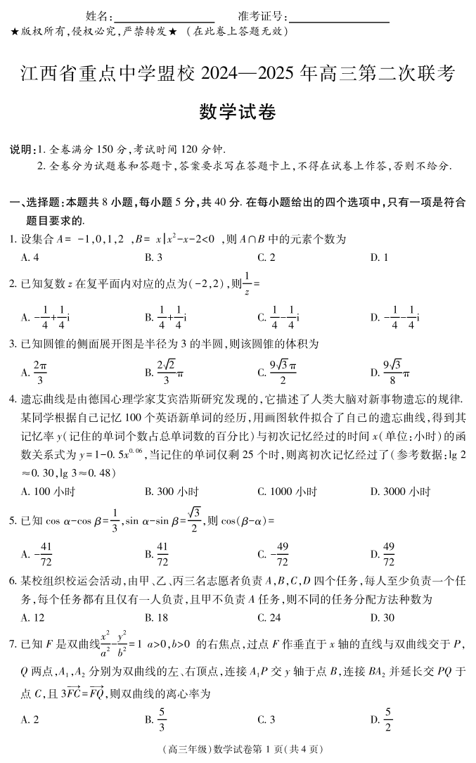 江西省重点中学盟校2024-2025学年下学期高三第二次联考数学