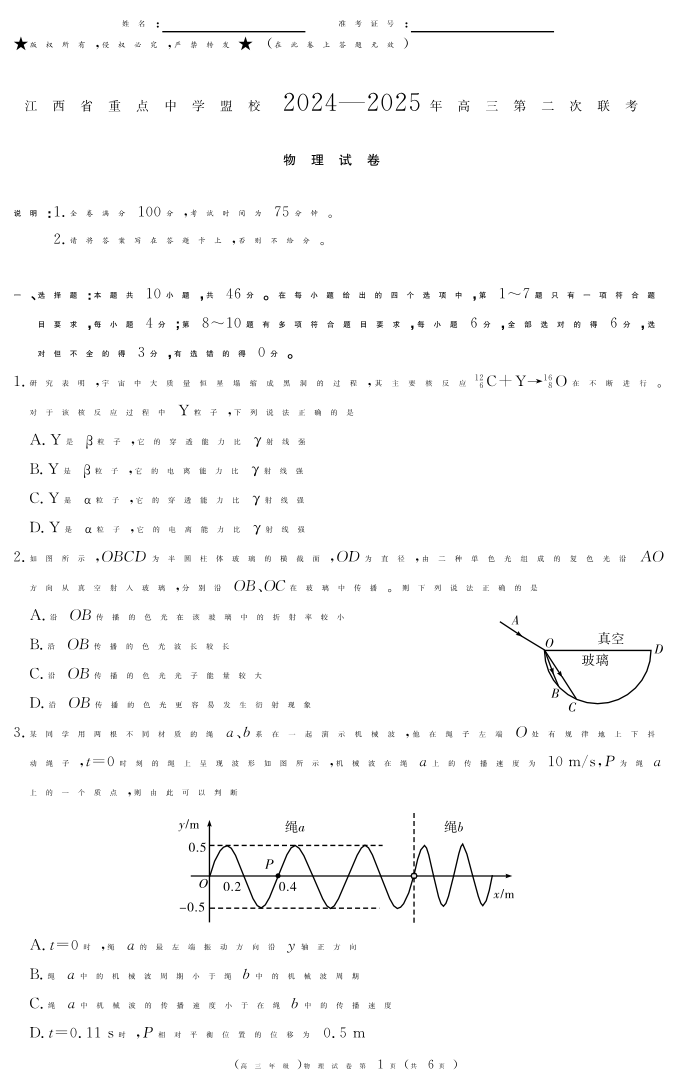 江西省重点中学盟校2024-2025学年下学期高三第二次联考物理