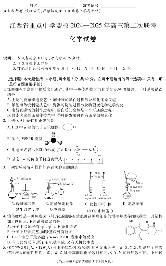 江西省重点中学盟校2024-2025学年下学期高三第二次联考化学