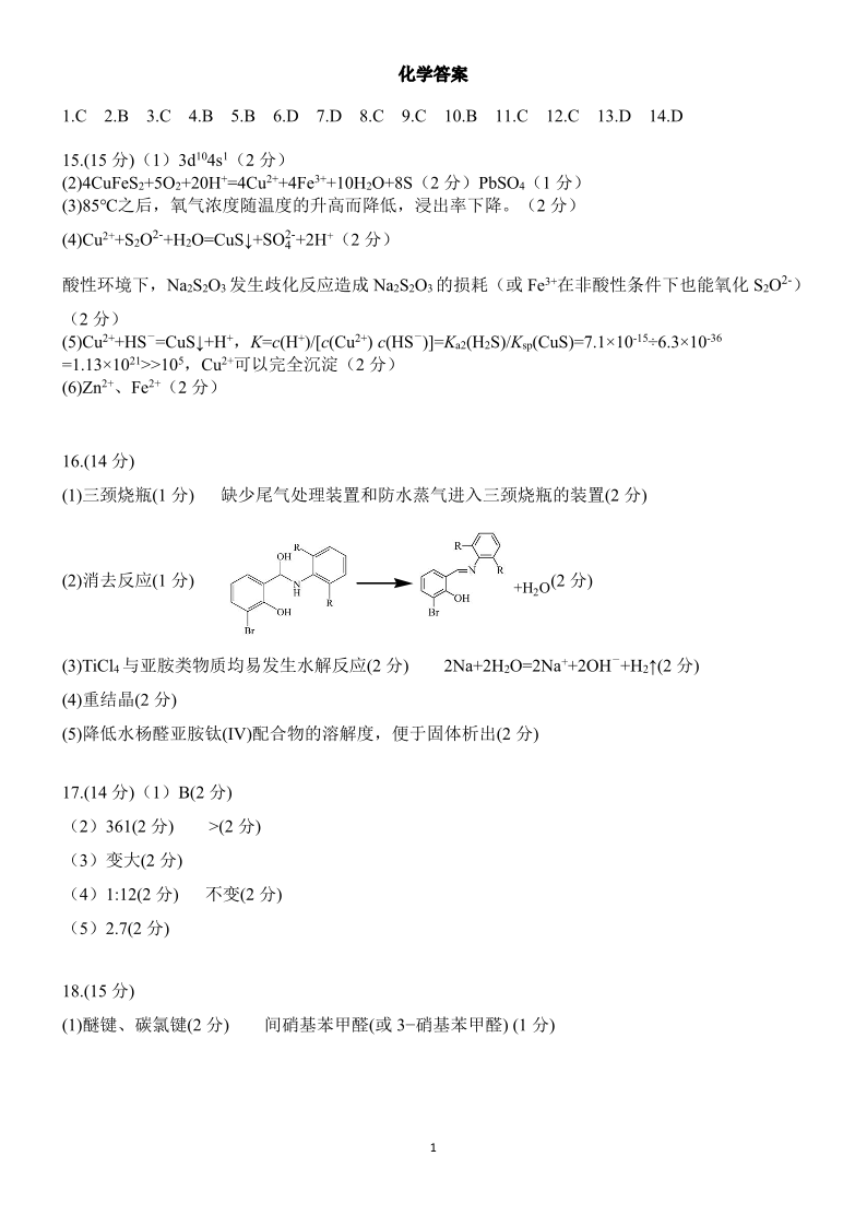 江西省重点中学盟校2024-2025学年下学期高三第二次联考化学答案