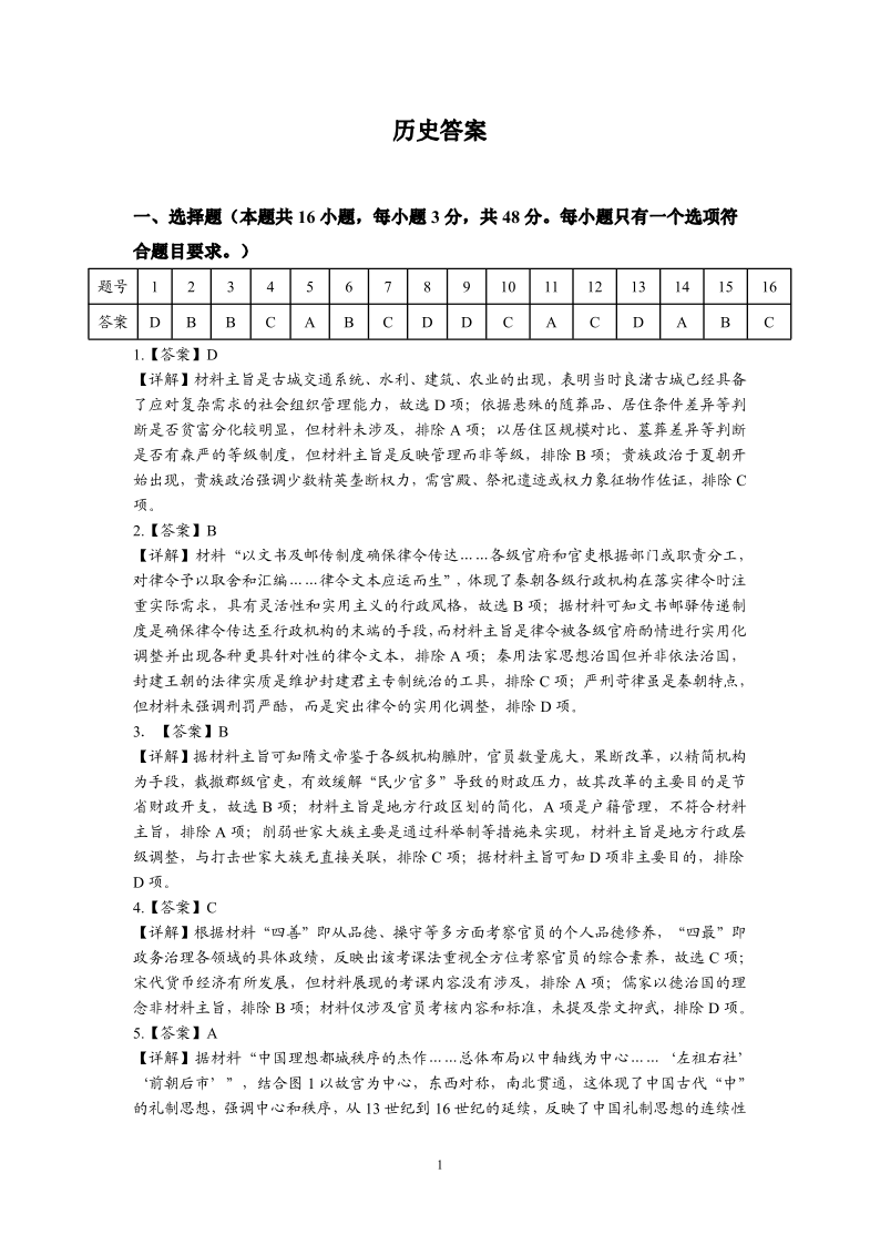 江西省重点中学盟校2024-2025学年下学期高三第二次联考历史答案