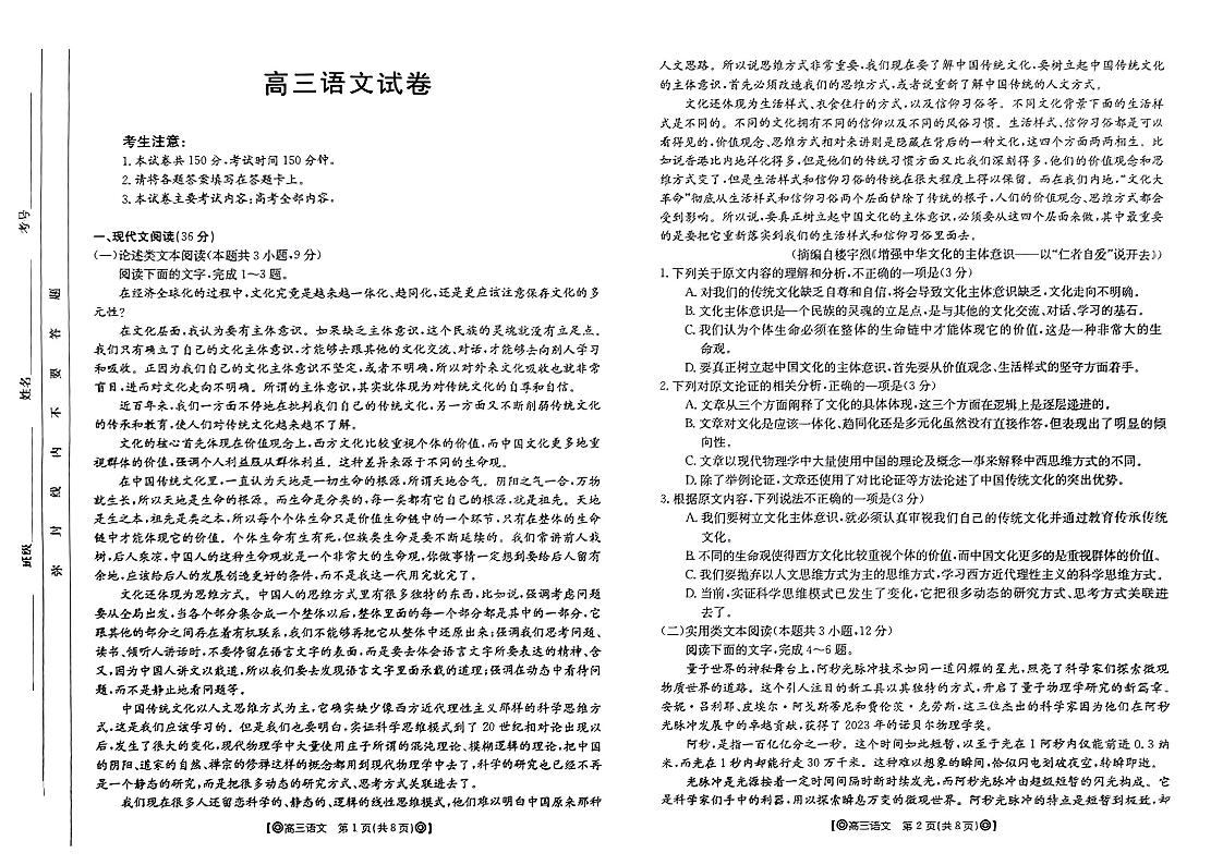 青海省2024届高三下学期金太阳4月联考(同心圆)语文+答案