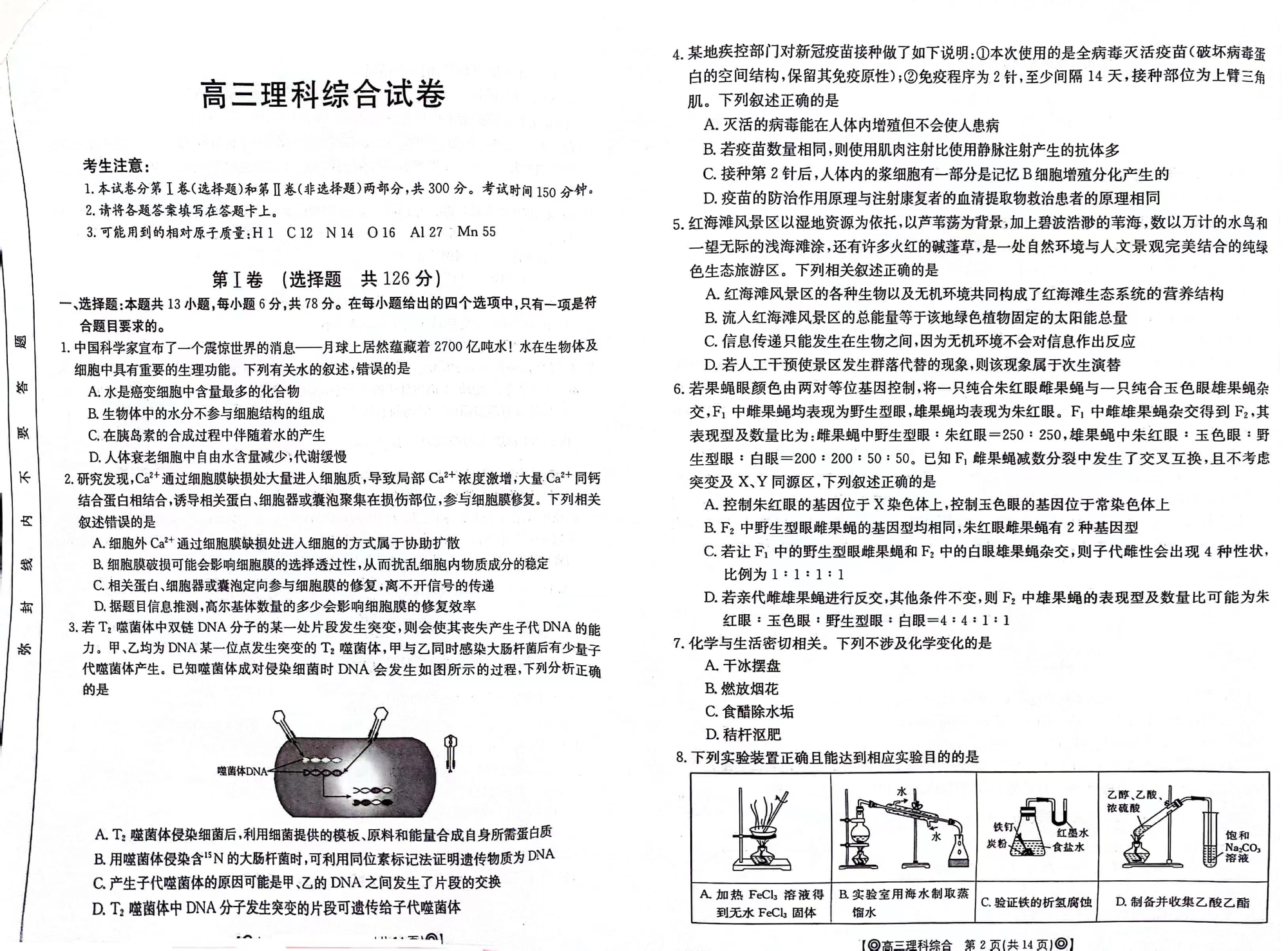 青海省2024届高三下学期金太阳4月联考(同心圆)理综+答案