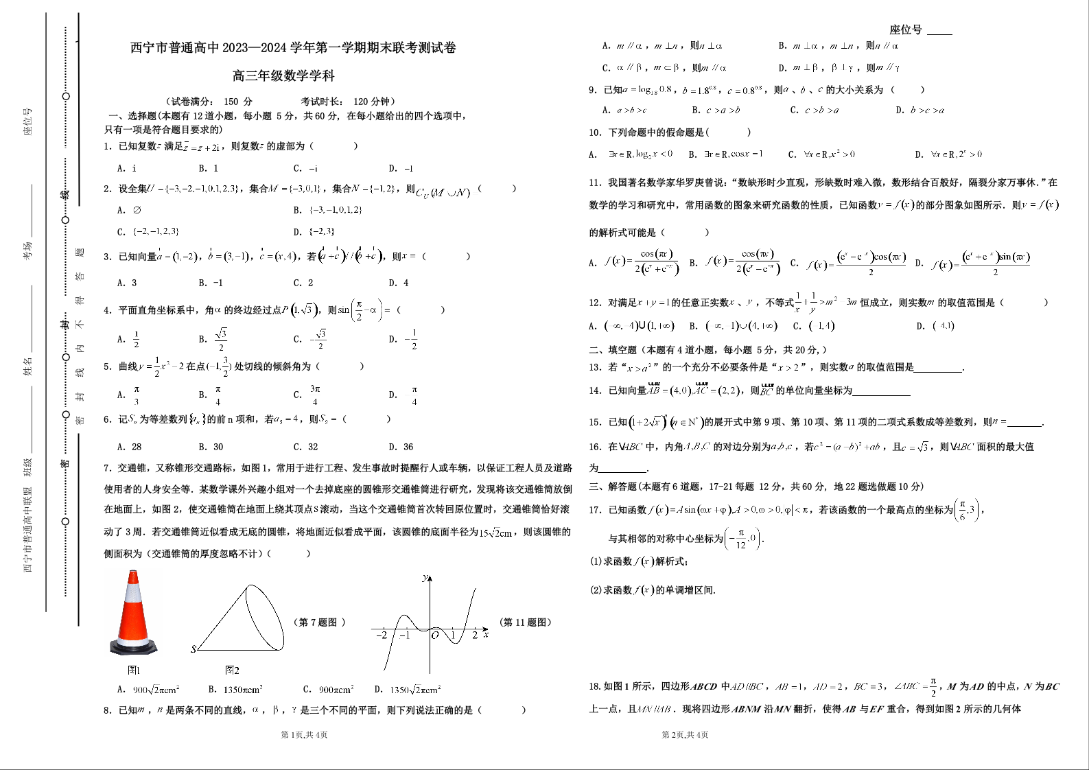 青海省西宁市2024届高三上学期期末联考理科数学