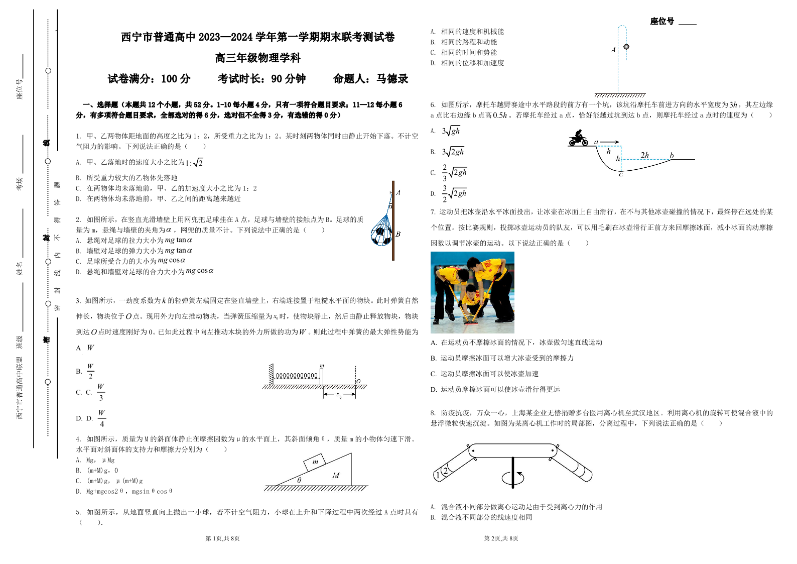 青海省西宁市2024届高三上学期期末联考物理