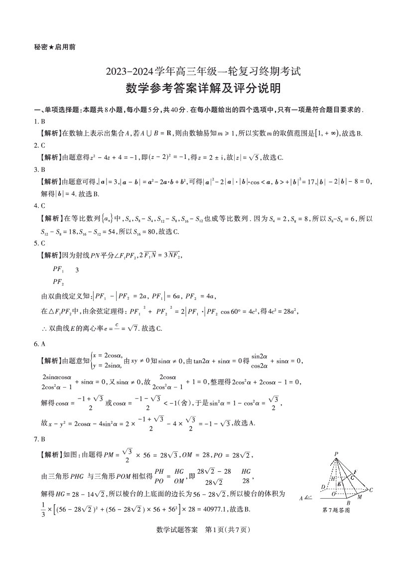 山西省2024届高三年级一轮复习终期考试数学答案