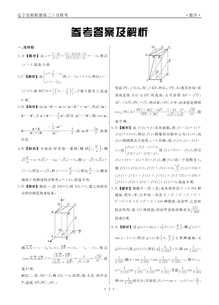 辽宁省名校联盟 2024-2025学年下学期5月高三联合考试数学答案