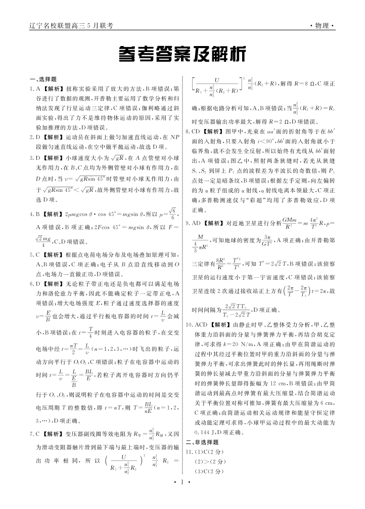 辽宁省名校联盟 2024-2025学年下学期5月高三联合考试物理答案