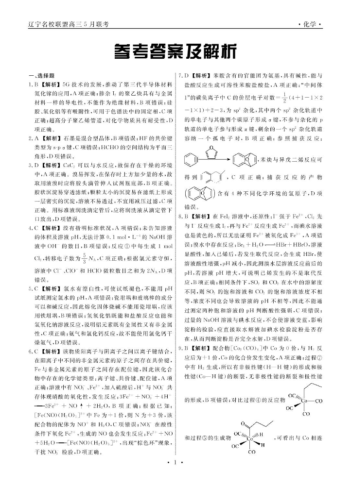 辽宁省名校联盟 2024-2025学年下学期5月高三联合考试化学答案